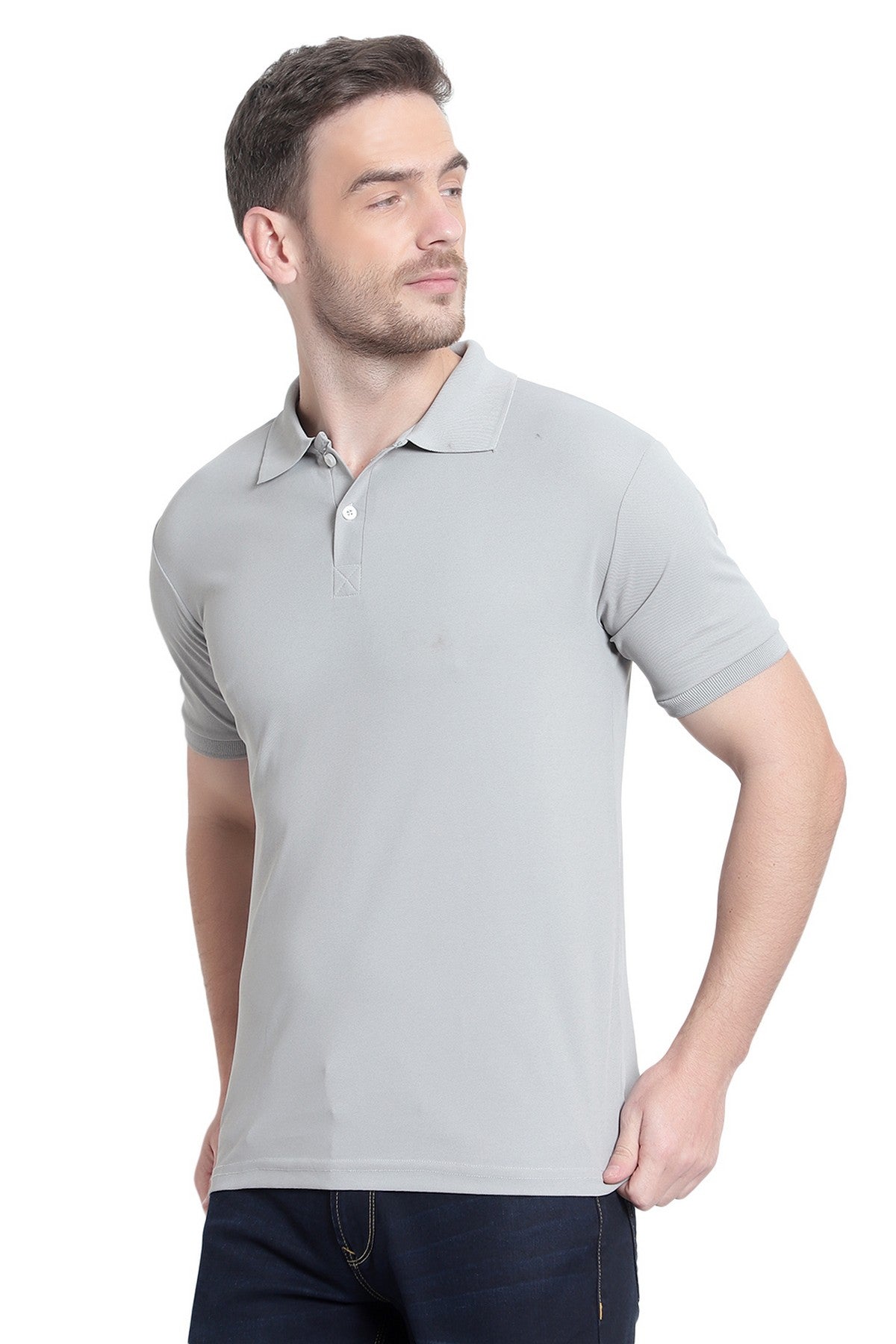 This grey solid t-shirt is made from the finest materials, perfect for any occasion. The unique polo neckline gives it a fashionable look, while the soft peach hue adds a subtle touch of style. Get dressed in no time with this classic men's t-shirt.