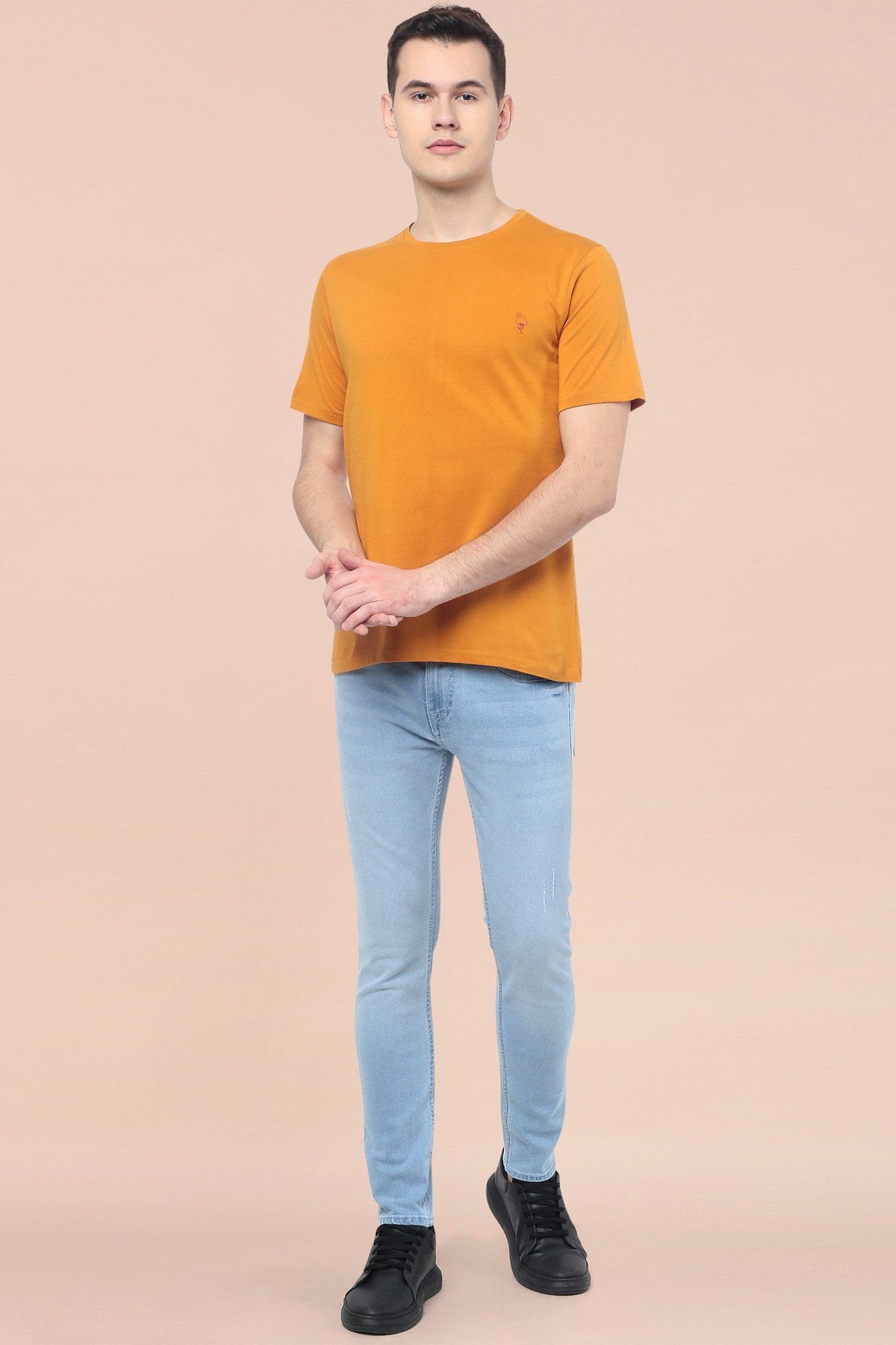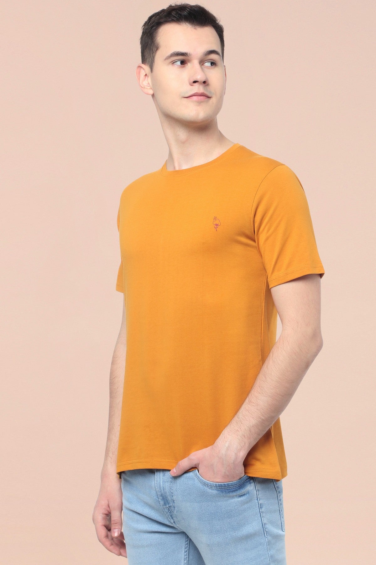 This Mustered Solid Men's Half Sleeve Pure Cotton Round Neck T-Shirt is the perfect everyday wear. Crafted with 100% cotton, it ensures breathability and a comfortable fit. The half sleeve and round neck design adds to its classic look.