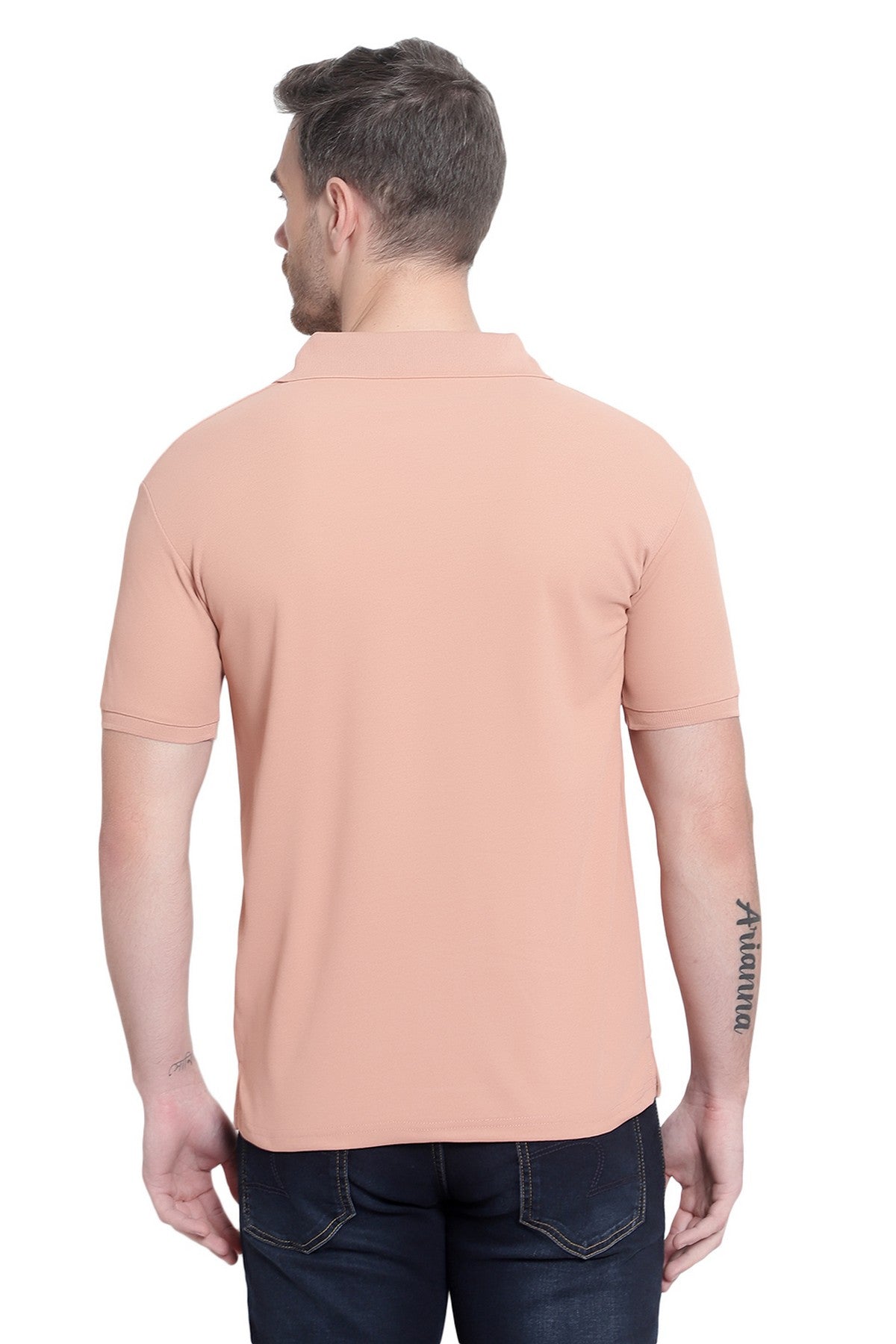 Solid Men Polo Neck Peach T-Shirt